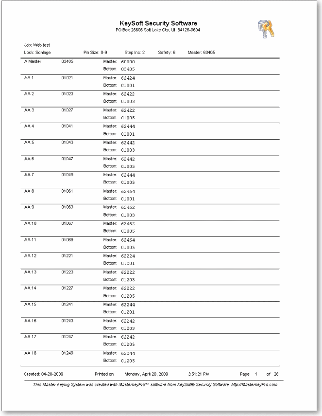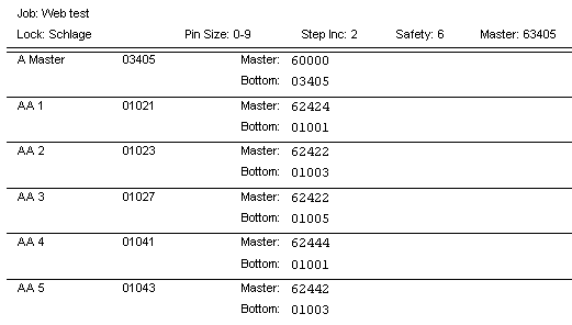 Master Keying Reports